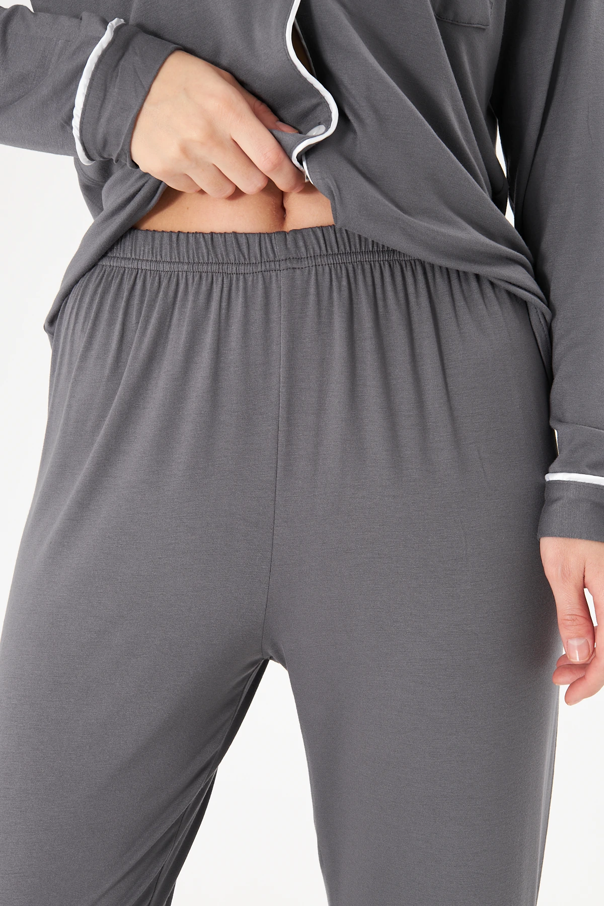 Lara Grey Cotton Soft %100 Pamuk Uzun Kollu Pijama Takımı